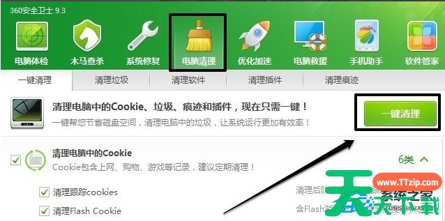 1、首先我们打开360安全卫士,然后点击电脑清理,然后选择一键清理进行垃圾文件的清理。