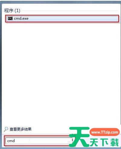 1、点击开始菜单,在开始搜索框中输入cmd,然后双击打开出现的cmd.exe启动程序。