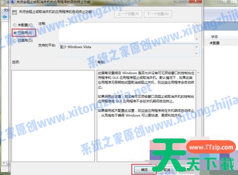 8、在编辑策略里选择已启用,然后应用确定就可以了。