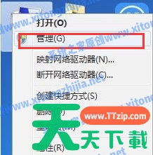 2、没有看见摄像头的话,我们就鼠标右键点击计算机选择”管理“选项。
