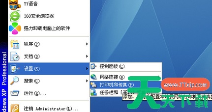 3、在开始菜单设置中打开打印机和传真。