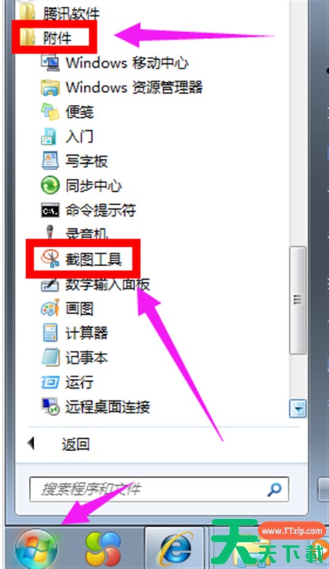 打开任务栏之中的开始菜单,接着在【所有程序】里面找到【附件】,其中就有【截图工具】啦,点击选择它即可使用。
