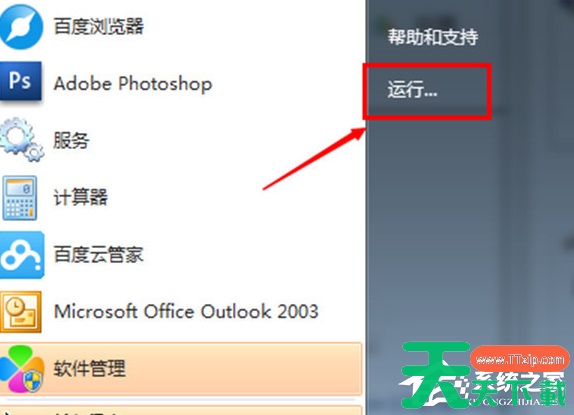 1、首先点击开始菜单,找到运行。