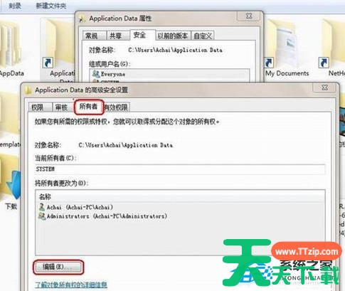 2、 在这个高级安全设置里面选择所有者,然后这里我们可以看到这个文件夹的权限只是赋予了SYSTEM,因此你是管理员帐户也无法访问。此时点击下面的编辑。