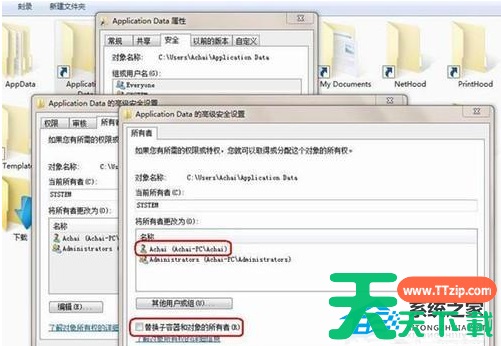 3、 然后在弹出的窗口双击用户帐户,同时要选择下面的“替换子容器和对象的所有者”。假如不选择的话,还是无法打开文件夹下面的子文件的,选择好后点应用。