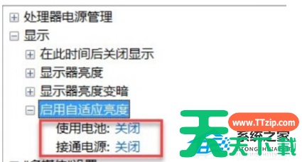 3、然后我们在弹出来的窗口中点击打开“启用自适应亮度”,关闭下方两个选项即可。