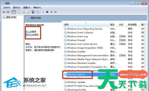 2、然后在打开的窗口中找到“Windows Search”,将它设置为“启动”。