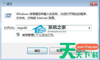 2、在运行窗口中输入“regedit”,按回车键确定。