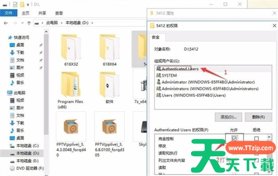 4、还是选择Authenticated Users,然后在下面的框中勾选完全控制,再点击确定。