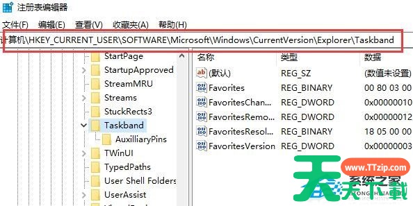 3、然后依次进入下面的路径:“MicrosoftWindowsCurrentVersionExplorerTaskband”。