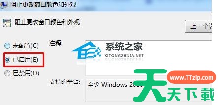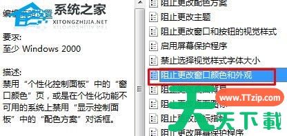4、双击打开右侧的“阻止更改窗口颜色和外观”。