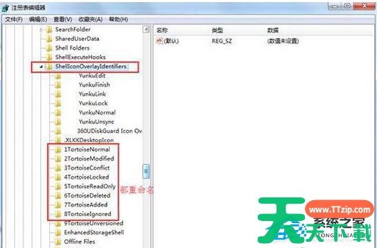 3、将TortoiseAdded、TortoiseConflict……TortoiseUnversioned分别重命名,命名为0TortoiseAdded、1TortoiseConflict……8TortoiseUnversioned。