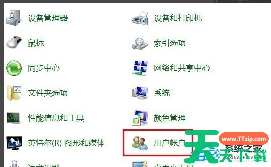 2、在控制面板中点击“用户账户”图标,进入下一步。
