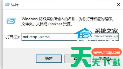2、输入“net stop uxsms”,再点击“确定”即可。