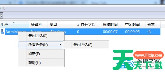 3、也可以使用“所有任务”->“关闭会话”,这样就可以正常访问了。