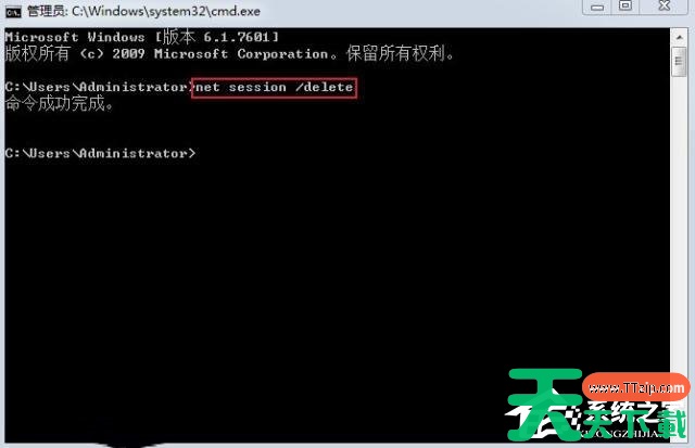 2、然后,输入命令“net session /delete”并回车。