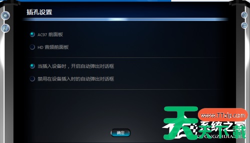 3、麦克风是插前面板的,是有一个“禁用前面板检测”或者“AC97前面板”的设置,然后点击确定。