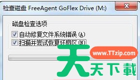 2、在磁盘检查窗口,同时勾选“自动修复文件系统错误”和“扫描并尝试恢复坏磁盘”,点击“开始”按钮修复。