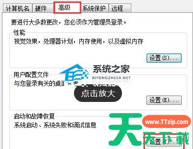 5、在跳出的属性框中,选择高级,选择启动和故障恢复后面的设置。