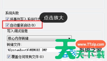 6、进入设置,选择系统失败,看系统重启是否打勾,如果没有,打勾,点击确定,重新应用重启,查看效果