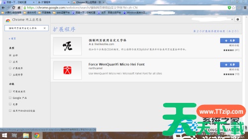 2、前往chrome的应用商店-搜索强制网页使用自定义字体-安装至chrome。