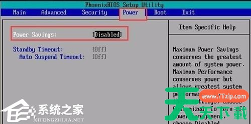 2、使用方向键进入“Power”,找到“Power Saving”。