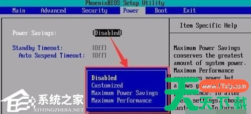 3、将右边设置为“Disabled”就是关闭,另外几个选项是节能模式的不同程度。