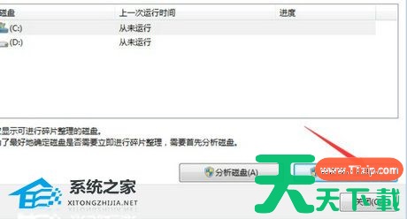 3、选取C盘,在按下“磁盘碎片整理”按钮,系统就会对C盘进行分析,并进行整理。