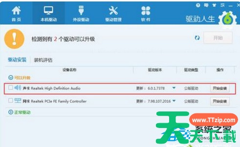 2、这时候自己下载声卡驱动安装,或者使用驱动精灵、驱动人生等工具安装最新声卡驱动。