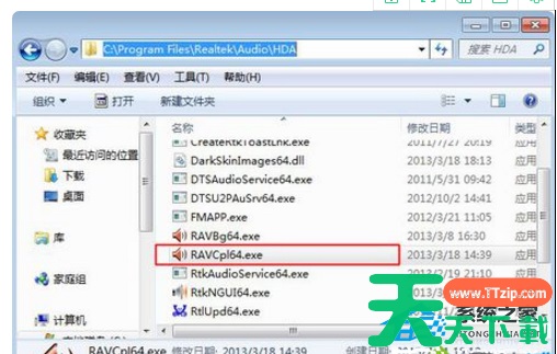 2、如果控制面板没有管理器选项,则进入C:Program FilesRealtekAudioHAD目录,双击打开RAVCpl64.exe,并在Realtek高清晰音频管理器右上角,点击黄色文件夹图标,它是插孔设置图标。