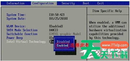 3. 此时该选项将变为Enabled,按F10键即可保存bios的所有设置并退出,这时就成功开启VT功能了。
