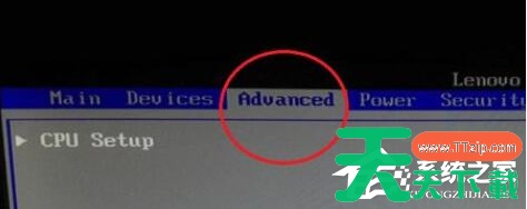 1. 首先进入电脑的BIOS设置,找到“Advanced”选项,使用方向键点击下方“CPU Setup”并按下回车键。