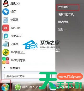 1. 点击电脑桌面左下角的开始按钮,选择控制面板。