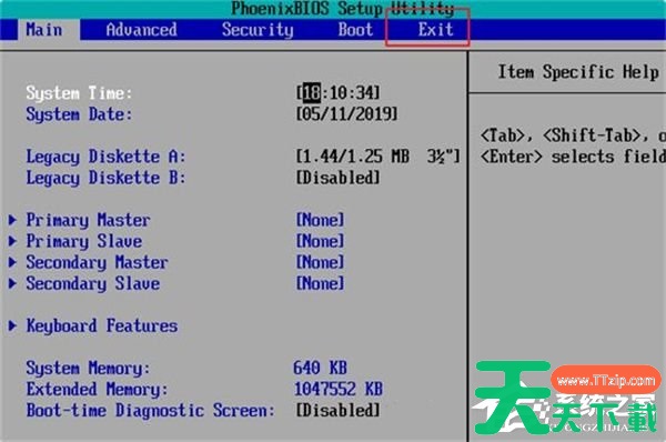 2. 切换到Exit选项。