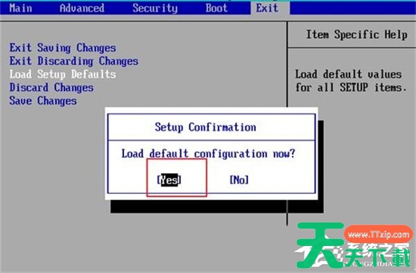 4. 在第三选项上,按回车键,然后选择YES选项即可将BIOS恢复为默认设置,重启电脑即可。