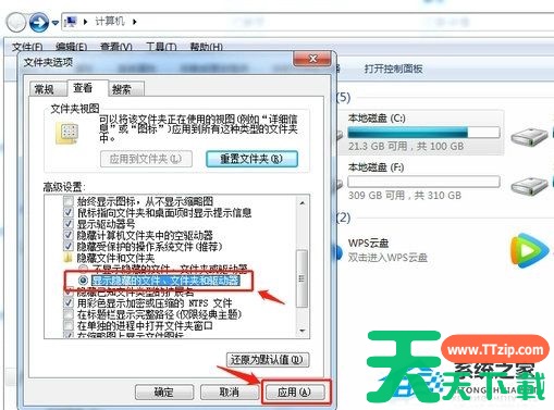 以上就是天天下载Ttzip为你带来的关于“Win7如何显示C盘隐藏文件夹”的全部内容了,希望可以解决你的问题,感谢您的阅读,更多精彩内容请关注官网。