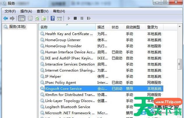 2.在服务中找到Kingsoft Core Service服务,双击打开后,设置启动类型为禁用,即可结束。