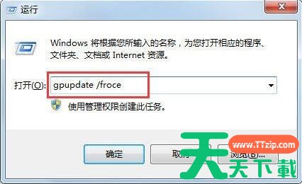 5、设置好之后,需要让组策略设置生效,可以通过输入“gpupdate /froce”马上刷新策略设置生效,或者重启电脑;如图所示: