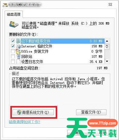 4.上面窗口结束后会出现C盘的“清理清单”,在此窗口我们选择“清理系统文件”项;如图所示:
