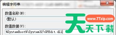 3.在窗口中,将数值数据改为“%SystemRoot%System32GPEdit.dll”,点击确定即可,如下图所示: