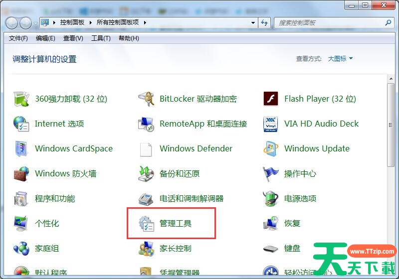 2、进入控制面板,我们点击类别选项,选择大图标,选择管理工具;
