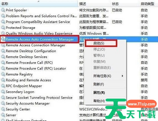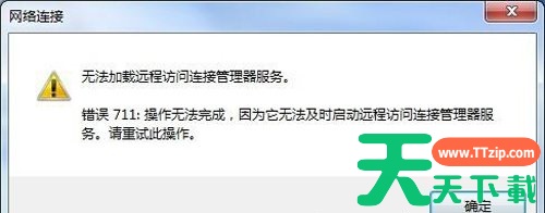 遇到宽带连接连不上,并提示“网络连接,无法加载远程访问连接管理器服务。错误711:操作无法完成,因此它无法及时启动远程访问连接管理器服务。请重试此操作。”的对话框时,我们该如何解决?下面天天下载Ttzip教大家在Win7系统中,解决电脑网络连接无法加载远程访问连接管理器服务的问题。
