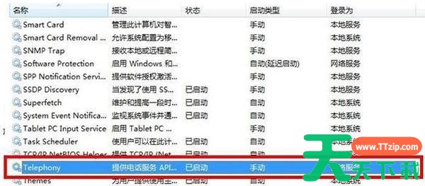 10.确认一下“Telephony”服务正在处于开启状态,如果未开启该服务,鼠标单击右键,选择“启动”;
