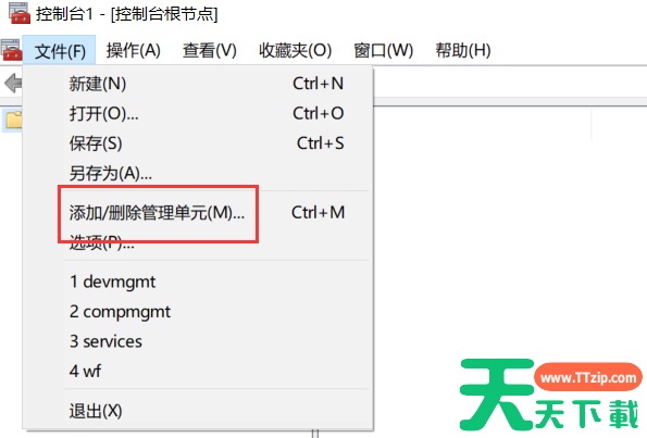 2、在“文件”菜单上,单击“添加/删除管理单元”;