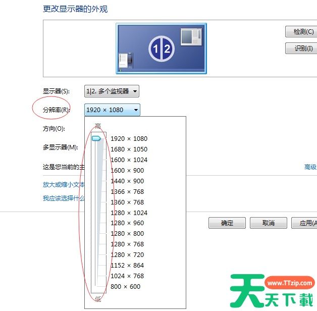 可以拖到滚动条调节分辨率,往高拖动就是调大分辨率,往低拖动就是调小分辨率。