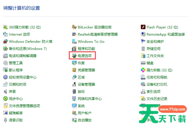(1)打开控制面板。找到电源选项。