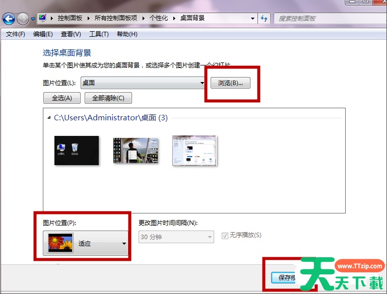很多朋友使用Win7系统已经很多年了,但是现在他们不知道如何设置Win7的桌面背景,天天下载Ttzip很是无语。由于有些用户不知道,天天下载Ttzip将分享Win7桌面背景的设置教程,以及需要查看的用户。 Win7如何设置桌面背景 1.进入Win7系统桌面,鼠标右键桌面空白处,选择个性化打开,进入下一步。 桌面背景设置图-1 2.在打开的个性化界面中点击“桌面背景”,进入下一步。 windows7图-2 3.接着点击浏览按钮,选择自己喜欢的图片,然后选择图片为止,点击点击“保存修改”即可。 除特别注明外,本站所有文章均为 天天下载 原创,转载请注明出处来自 https://www.ttzip.com/214617.html