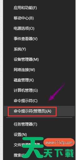 1.这里以Win10系统为例说明,鼠标右键开始按钮,选择命令提示符(管理员)选项打开,进入下一步。