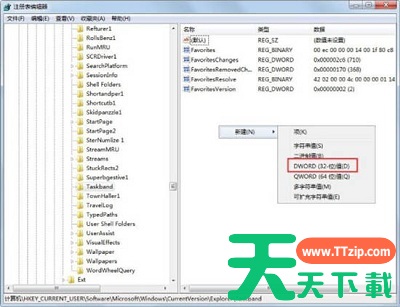 4、Taskband,选择新建→DWORD (32-位)值(D)。