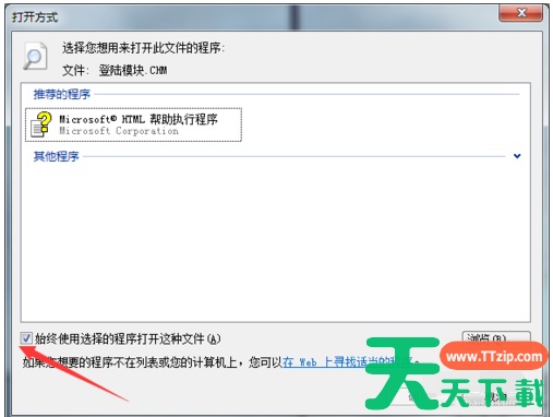 5、在新弹出窗口中勾选始终使用选择的程序打开。然后点击确定。